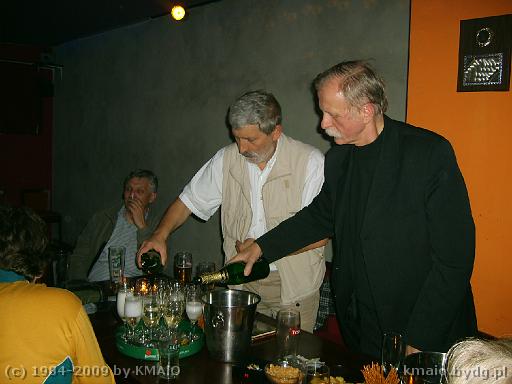 Prezes aktywnie pomaga przy trudnej sztuce nalewania bez rozlewania.
